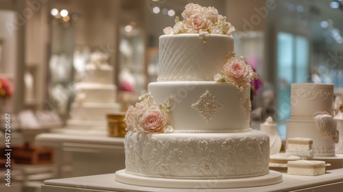 © Irina, Fototapeta premium Wedding cake on luxury store stand