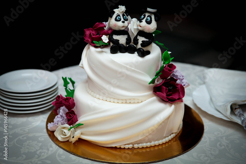 © Дмитрий Чапурин, Fototapeta premium wedding cake with figurines