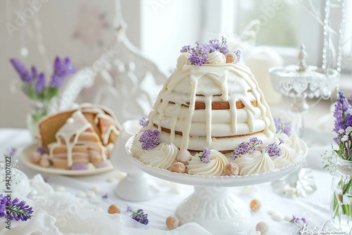 © ocean_14, Fototapeta premium wedding cake with flowers and cute