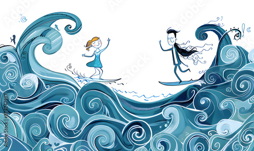 © jajuji, Obraz premium wedding card cartoon illustrator