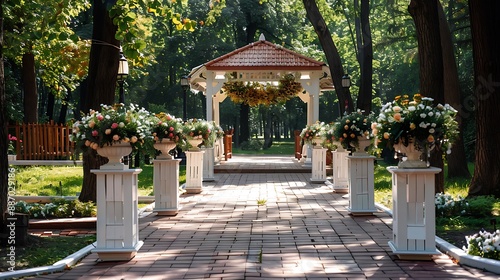 © QAISAR, Naklejka premium Wedding ceremony decoration in park
