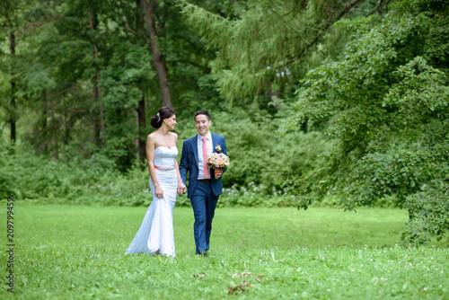 Fototapeta premium Wedding couple on the nature is walking