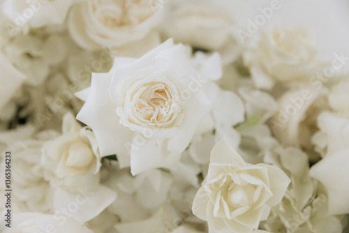 © Alex, Obraz premium Wedding decoration in a restaurant. White flowers, serving and decor for a wedding