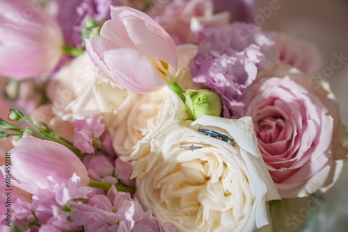 © YoshiroFOTO, Obraz premium wedding diamond ring and flower