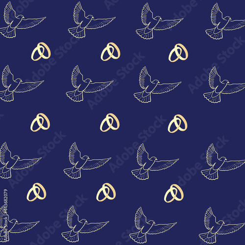 Fototapeta premium Wedding doves pattern with rings, symbol of love and wedding, Decoration...