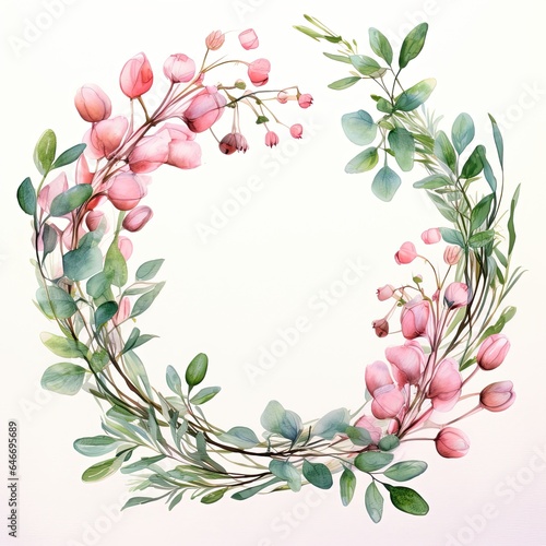 Fototapeta premium Wedding floral composition, watercolor eucalyptus greenery arrangement isolated white. Generative AI