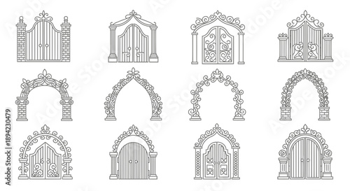 Fototapeta premium Wedding Gate Line Art Vector Illustration | Elegant Ceremony Entrance Outline...