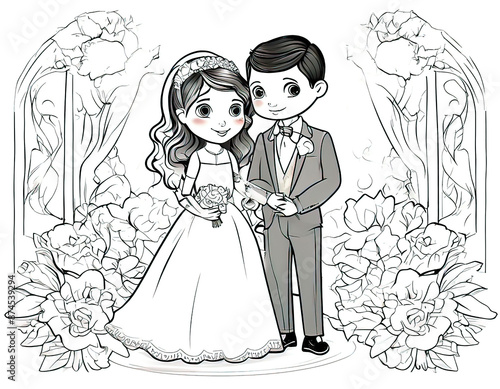 Fototapeta premium wedding greeting card, children's wedding illustration, newlyweds, wedding...