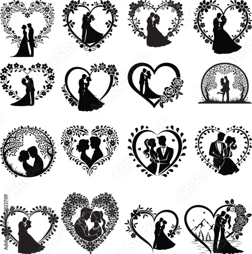 © Vector Zone Area, Obraz premium Wedding Heart Bride Groom bundle