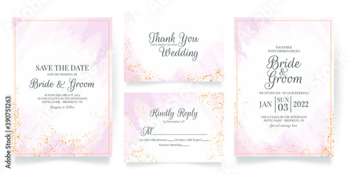 Fototapeta premium wedding invitation card template set with abstract watercolor decoration