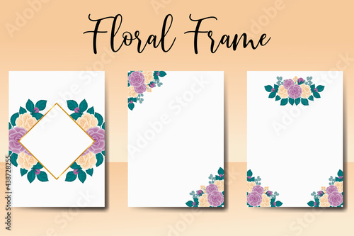 © Vectorcome, Fototapeta premium Wedding invitation frame set, floral watercolor Digital hand drawn Rose Flower design Invitation Card Template