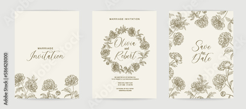 Fototapeta premium Wedding invitation. Peony illustration. hand-drawn frame.