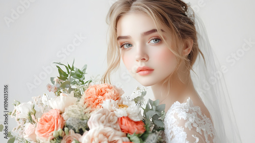 © jayranine, Naklejka premium Wedding photos with a clean background for free space for text. For use with advertising banners for weddings or Valentine's Day.