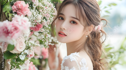 © Sunun, Obraz premium Wedding photos with a clean background for free space for text. For use with advertising banners for weddings or Valentine's Day.
