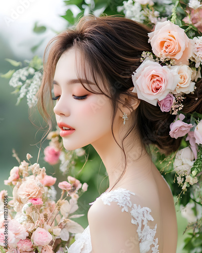 © jayranine, Naklejka premium Wedding photos with a clean background for free space for text. For use with advertising banners for weddings or Valentine's Day.