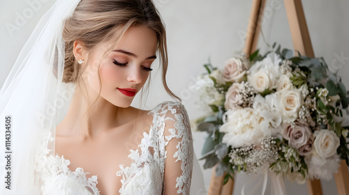 © Sunun, Naklejka premium Wedding photos with a clean background for free space for text. For use with advertising banners for weddings or Valentine's Day.
