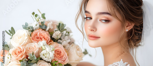 © Sunun, Naklejka premium Wedding photos with a clean background for free space for text. For use with advertising banners for weddings or Valentine's Day.