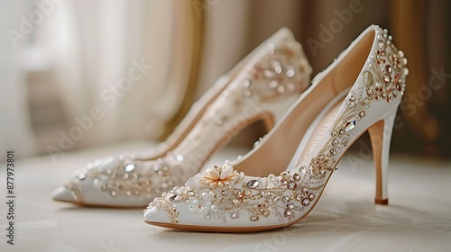 © Bonnie, Obraz premium wedding shoes of the bride beautiful fashion