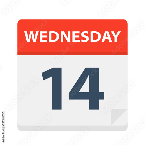 © Porcupen, Obraz premium Wednesday 14 - Calendar Icon. Vector illustration of week day paper leaf.