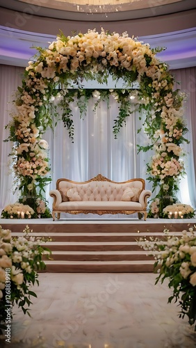 © Alfranto, Fototapeta premium Weeding Stage Decoration and Backdrop with Flower and Chair