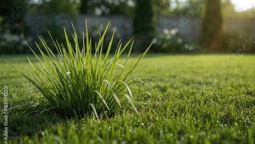 © vxnaghiyev, Naklejka premium Weedy crab grass in the lawn, emphasizing invasive species management