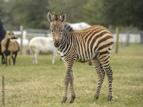 © Mark J. Barrett, Naklejka premium 6 week old Gray's Zebra foal with sheep