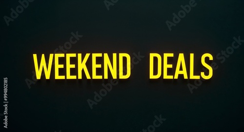 © Erlinda, Fototapeta premium Weekend deals word lettering with yellow glow on plain black dark background