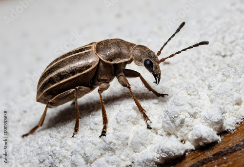 © Maksym, Obraz premium Weevil pest crawling on white flour surface