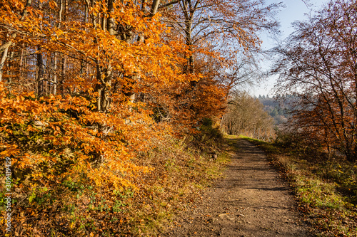 © Frank, Obraz premium Weg auf dem Horn an Buchenwäldern vorbei