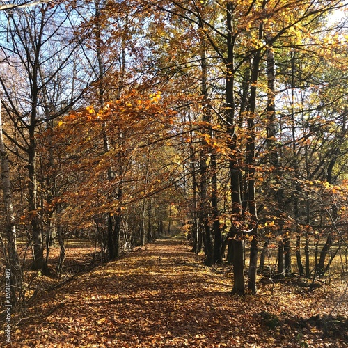 Obraz premium Weg durch einen herbstlich gefärbten Wald