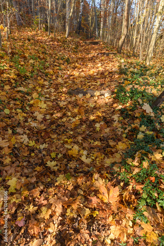 Fototapeta premium Weg im Herbst mit Buchenblättern im Wald