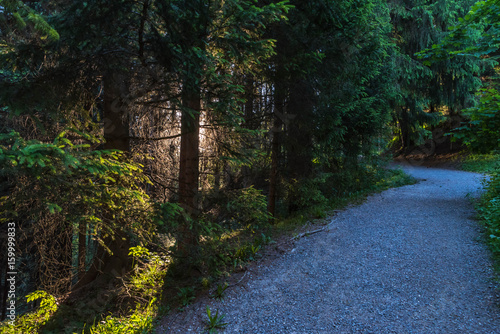 © driendl, Fototapeta premium Weg und Wald Gegenlicht