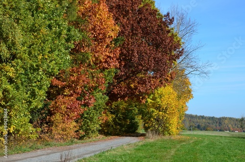 © alisseja, Naklejka premium Weg unter Herbstbäumen