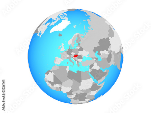 © harvepino, Fototapeta premium Węgry na niebieskim świecie politycznym. 3D ilustracja na białym tle.