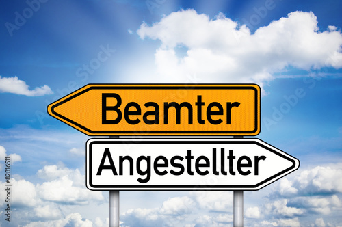 Fototapeta premium Wegweiser mit Beamter und Angestellter
