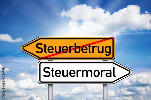 Obraz premium Wegweiser mit Steuerbetrug und Steuermoral