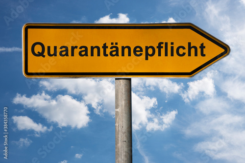 Fototapeta premium Wegweiser Quarantänepflicht
