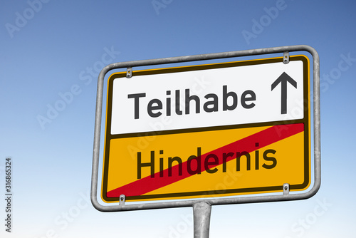 Obraz premium Wegweiser, Teilhabe statt Hindernis