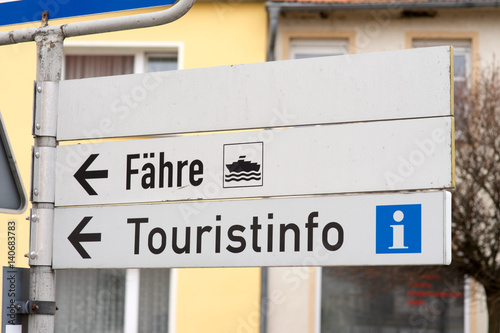 Fototapeta premium Wegweiser / Wegweiser mit den Worten Fähre und Touristinfo