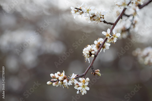 © Bianca, Obraz premium Weiße Blüten an Ästen. Frühlingserwachen, Makroaufnahme
