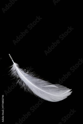 © Christina Pichler, Obraz premium weiße Feder vor schwarzem Hintergrund