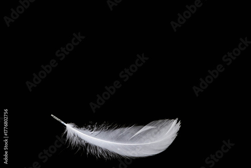 © Christina Pichler, Obraz premium weiße Feder vor schwarzem Hintergrund