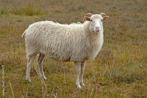 Obraz premium Weiße Gehörnte Heidschnucke