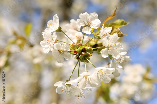 Fototapeta premium Weiße Kirschblüten an einem Ast im Frühling