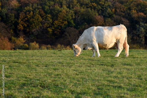 Obraz premium Weiße Kuh auf grüner Weide