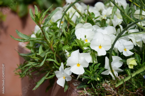 © Zeitgugga6897, Obraz premium Weiße Stiefmütterchen