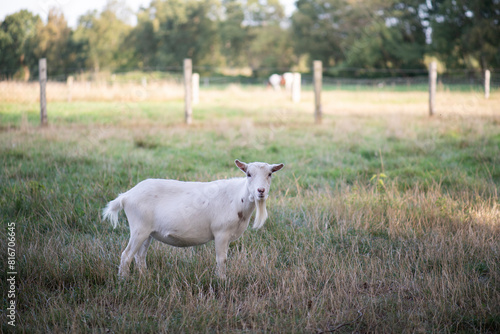 © Heidi Bollich, Obraz premium Weiße Ziege auf der Wiese