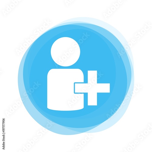 Obraz premium Weißes icon und Plus auf hellblauem Button
