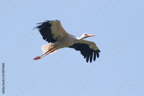 © juicyarts, Fototapeta premium Weißstroch in der Luft