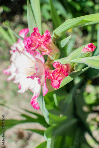 Fototapeta premium Weiß und Pink blühende Gladiole im Sommer